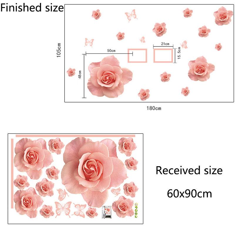 Pink Flowers Self Adhesive Wall Sticker Romantic Wedding Room Decor for Living Room Bedroom TV Background Home Decoration