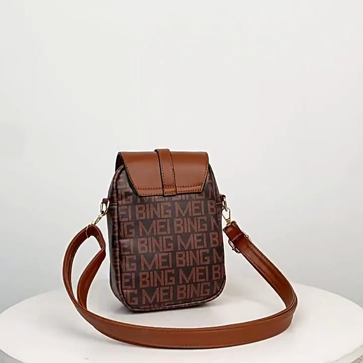 Women’s Crossbody Phone Bag, PU Leather Small Shoulder Purse with Flap & Zipper, Vintage Letter Print Mini Bag