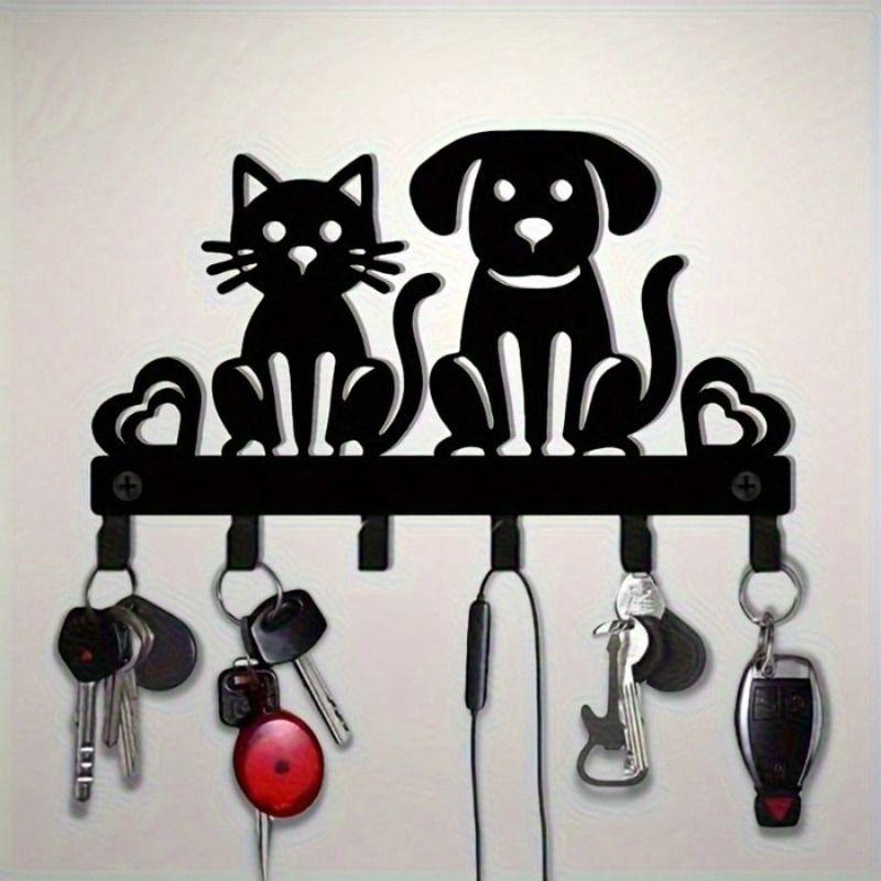 Black Iron Key Holder Wall Hook for Dogs Cats