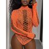 Thin Sex Underwear Royal Blue Sexy Jacquard Hollow Tight Bikini Long-sleeved One-piece Mesh