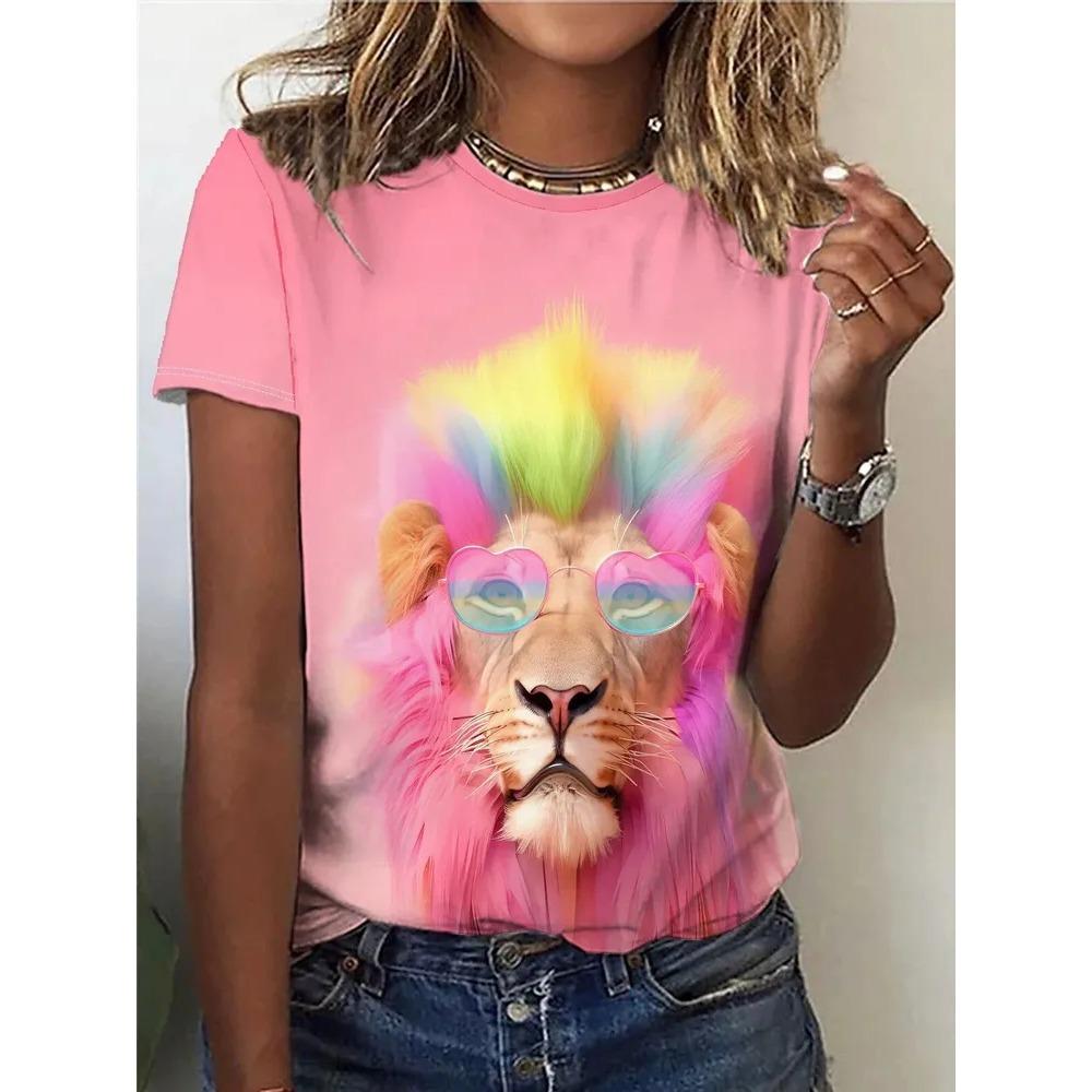 Fashionable Cute Interesting Animal Pattern Short Sleeved T-shirt Comfortable Loose Oversized Women's T-shirt