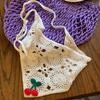Knitted Triangle Headband Cute Little Cherry French Pastoral Style Headband Towel Handmade Crochet Headscarf Hat Girls