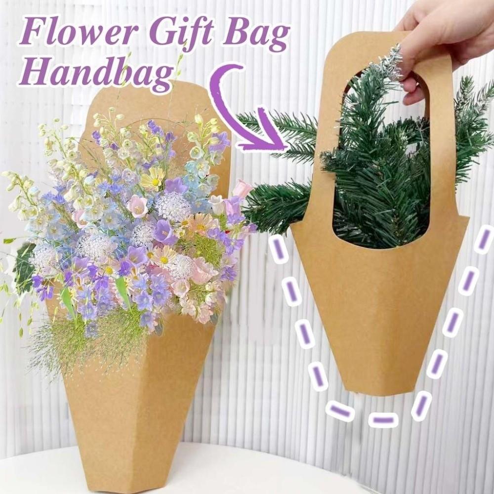 10Pcs with Handle Kraft Paper Tote Handheld Flower Basket Large Capacity Flower Paper Box Bouquet Tote Reusable Folding Gift Box