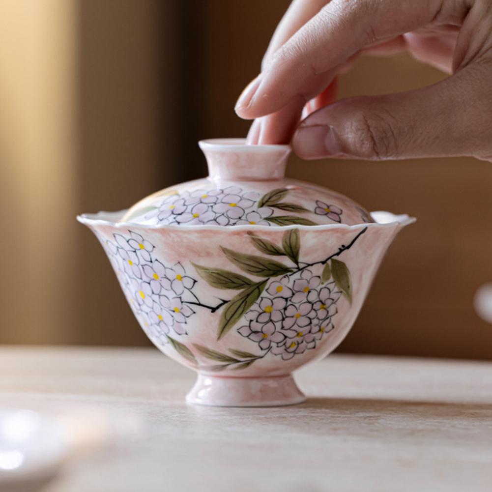 Ceramic Gai Wan Tea Set Retro Design Porcelain Mini Cups For Home Party