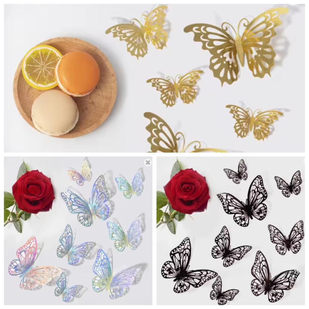 48pcs/4set 3D Butterfly Wall Decor 4 Styles 3 Sizes,Butterfly Decorations for Butterfly Birthday Party Cake Room Decorations
