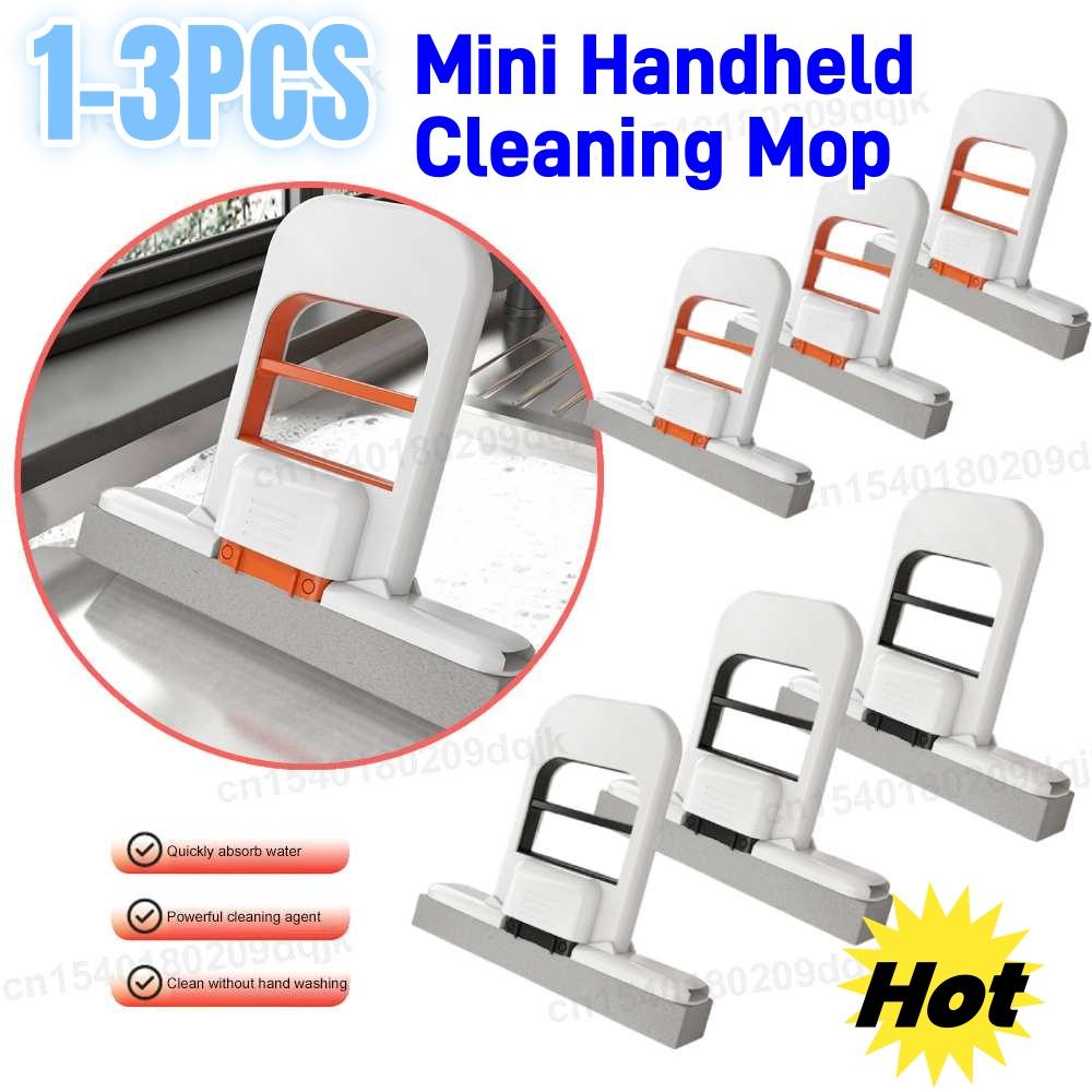 1-3pcs Handheld Cleaning Mop Mini Foldable Desktop Mop Home Replacement for Bathroom Kitchen Desktop Glass Living Room Car