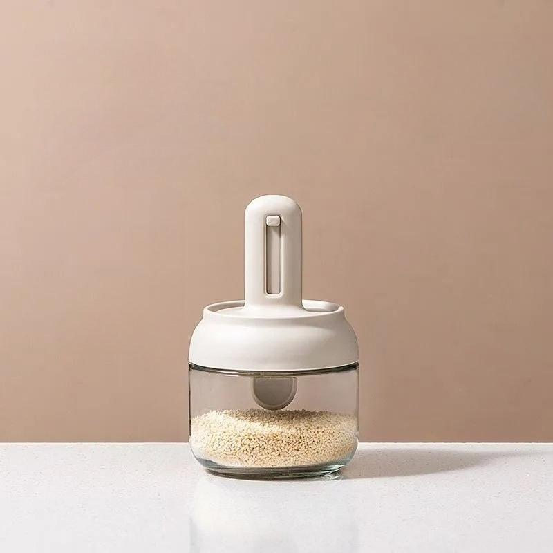 280ml Sealed Moisture Proof Salt Jar with Expandable Lid Spoon Kitchen Seasoning Container for Pepper and Salt Spices