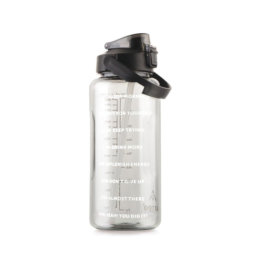 Smasher 2 Liter Quotes & Time Marker Sports Bottle With Easy to Carry Handle & Straw BPA Free, Leak Proof for Gym, Office, Workout- Black, Plastic