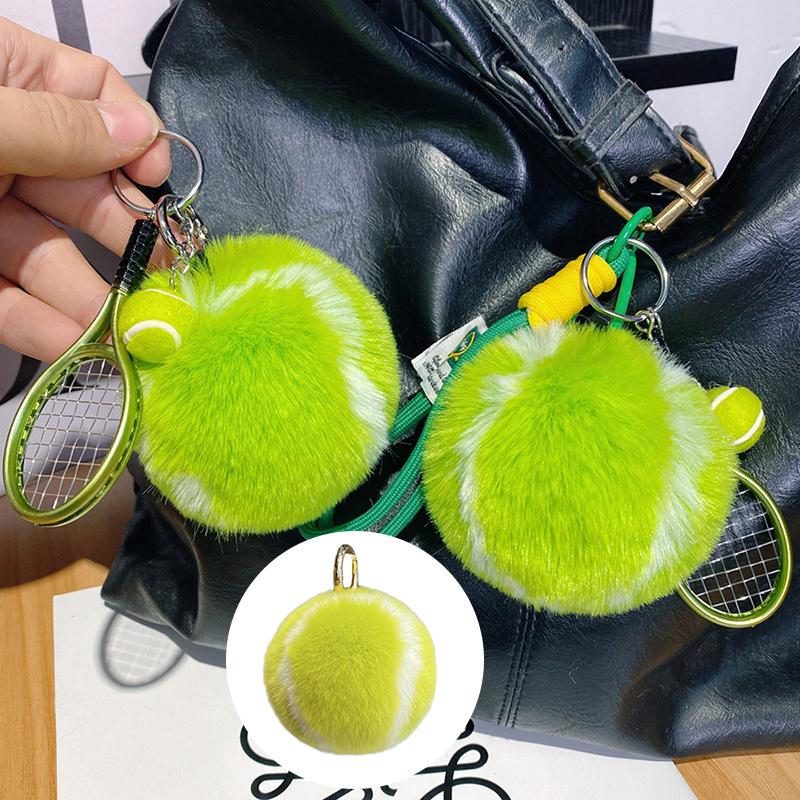 Tennis Keychain Cute Plush Ball School Bag Pendant Hanging Ornaments Key Accessories Keyring Tennis Fur Key Chain For Girl Gift