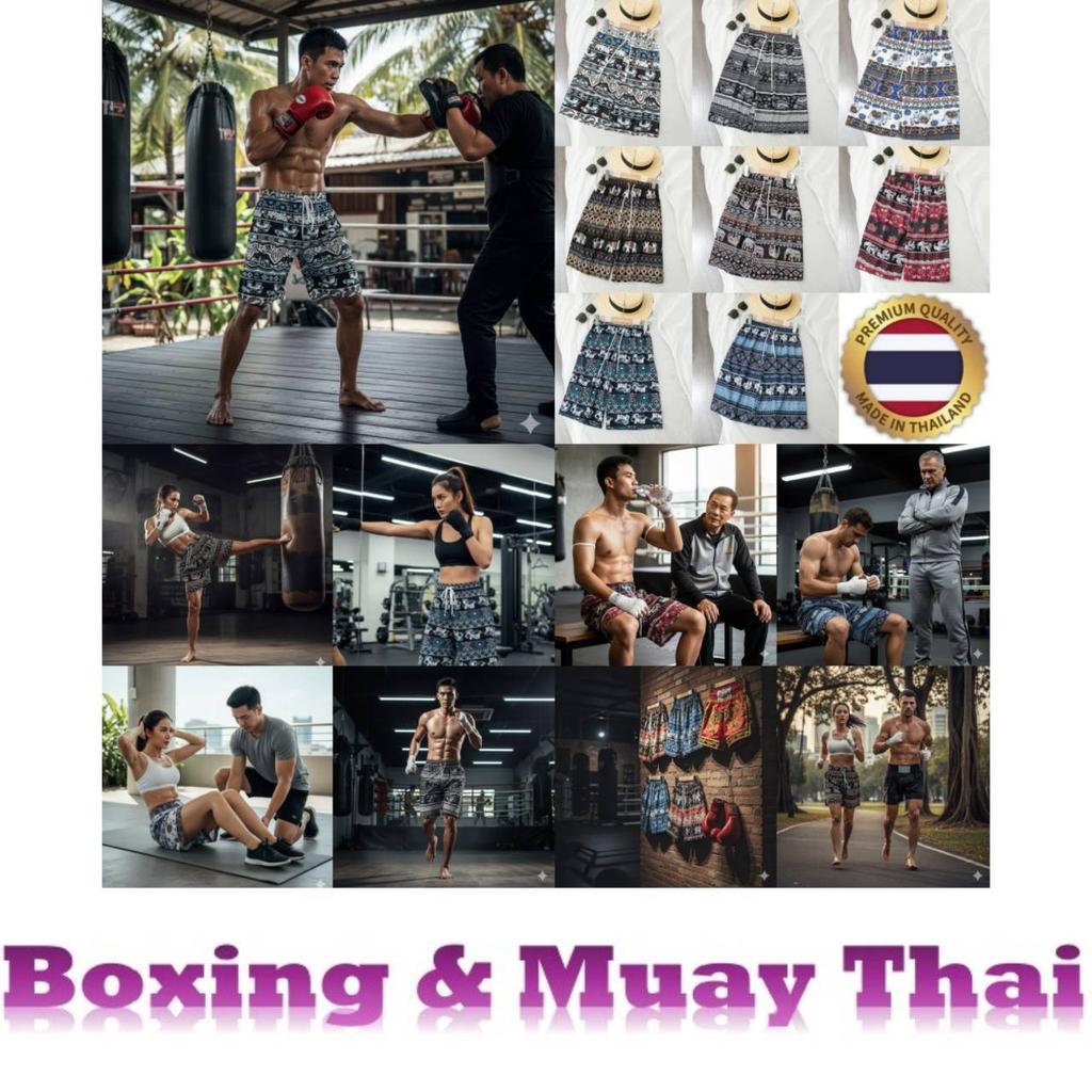 Elephant Pants Boxing Muay Thai Kickboxing Shorts Training Print Elastic Waistband Quick Dry Martial Art Boxer Unisex Men Women Workout Streetwear