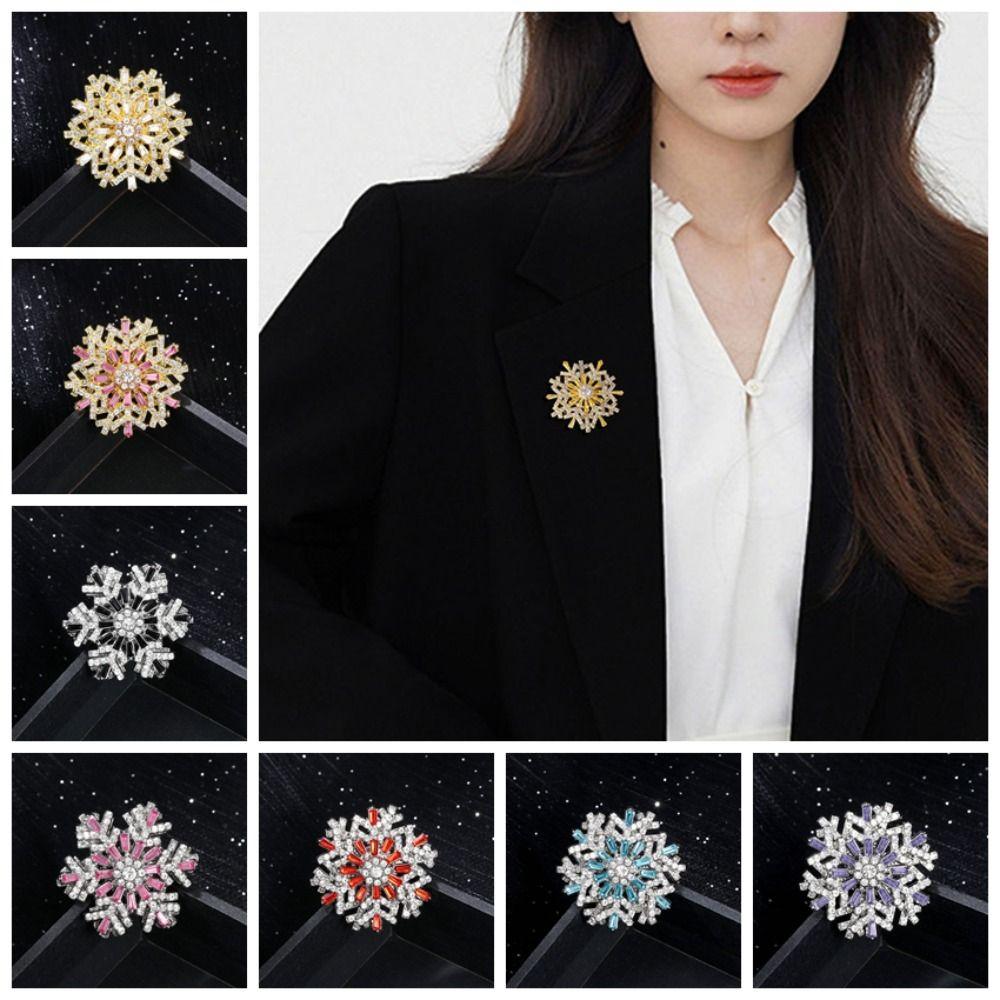 Sparkling Rotatable Snowflake Brooch Light Luxury Zinc Zinc Alloy Zircon Badge Creative Snowflake Pin Gift