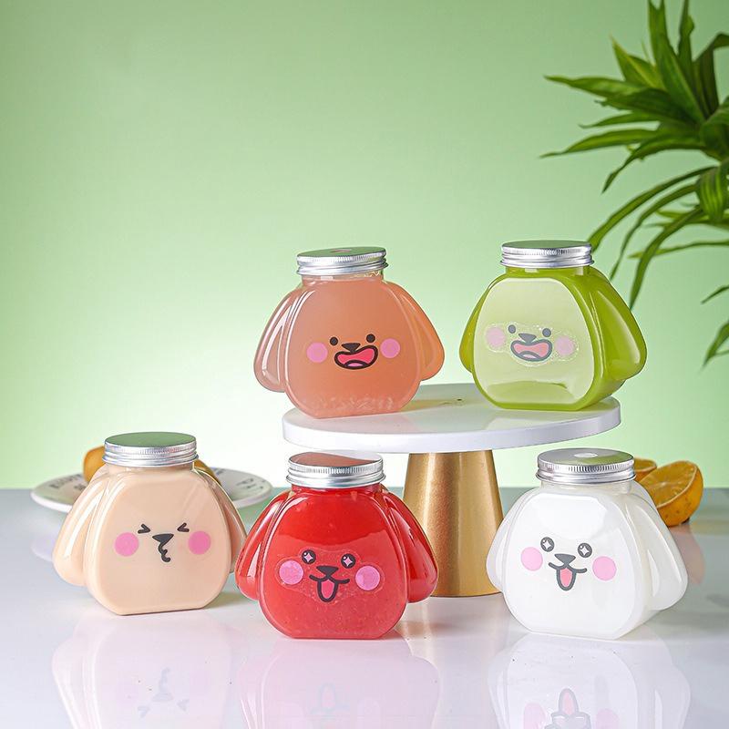 1Pc 350Ml Cute Dog Pet Bottle Clear Milk Tea Bottle Water Bottle Portable Coffee Juice Cold Drinking Cup Drink Bottle