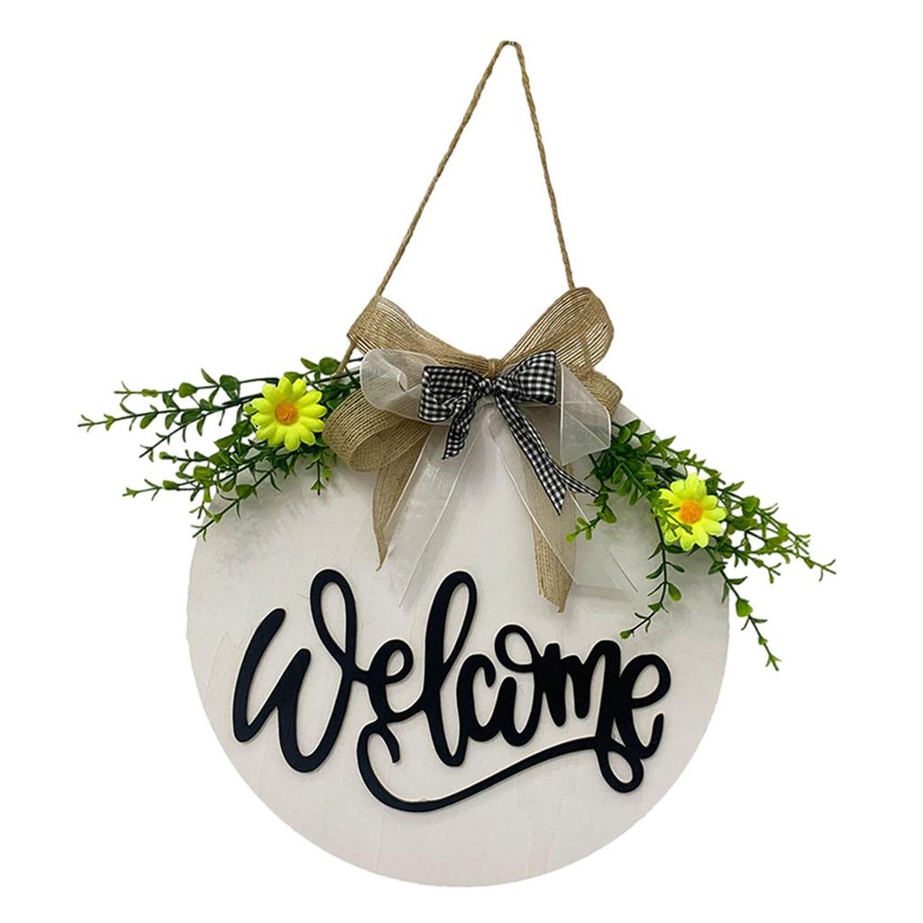 Welcome Sign for Front Door Door Wreath Ornament with Rope Wood Sign Door Hanger with Bow for Holiday Home Porch Decoration