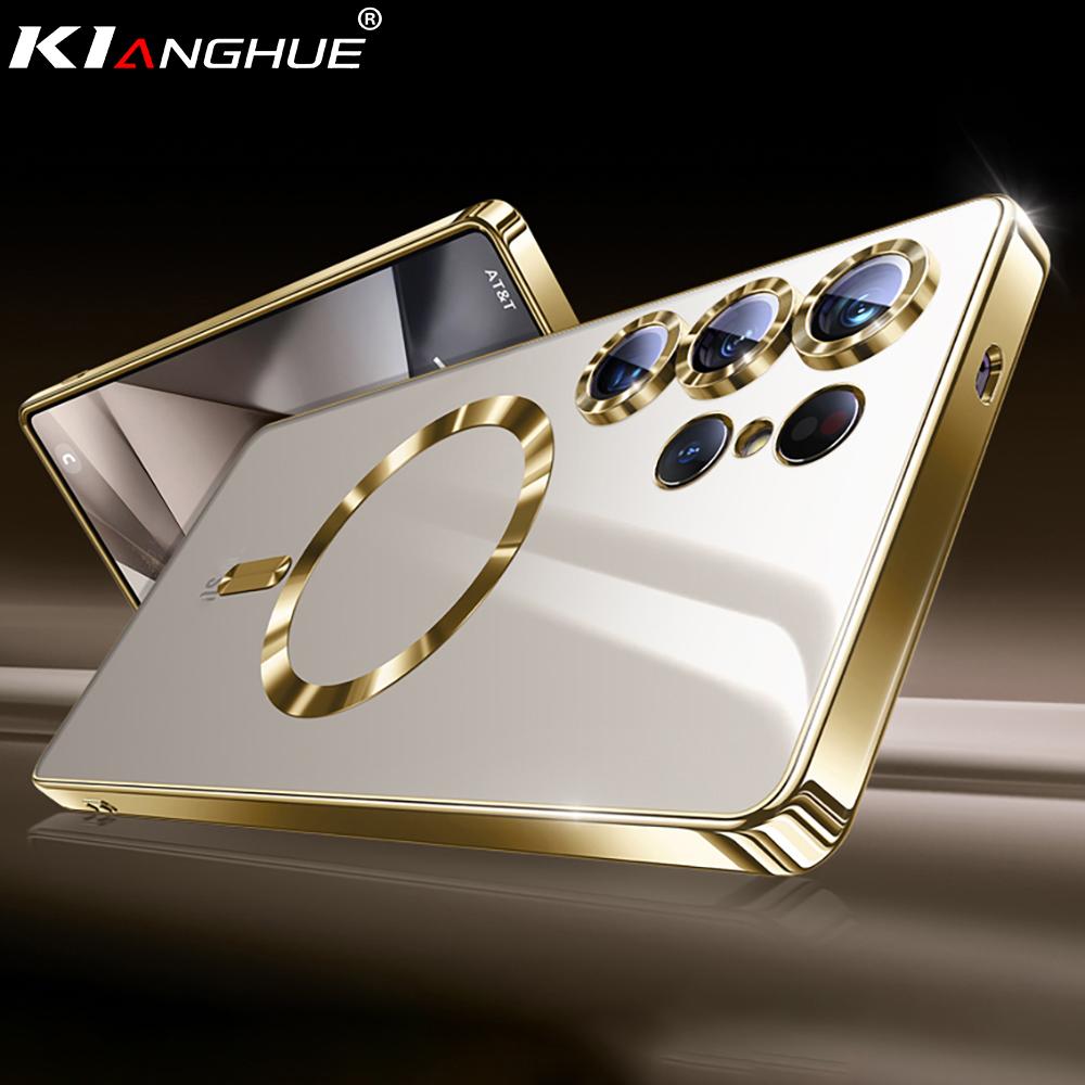 Luxury Glitter Plating Clear Silicone Soft Case For Samsung S25 Edge S24 S23 S21 FE S22 Ultra Plus Magnetic For Magsafe Shell