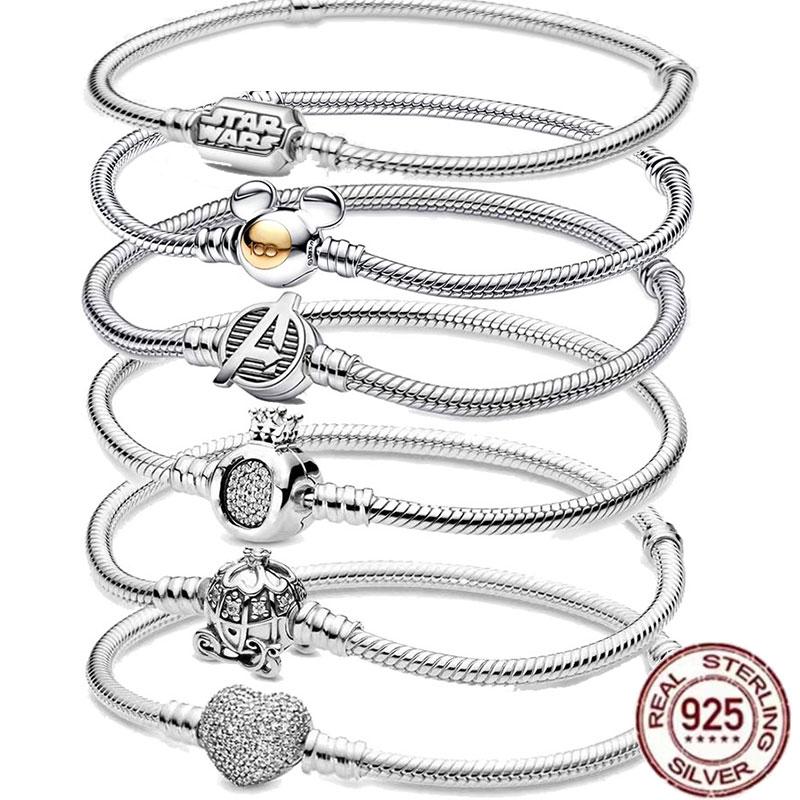 1/100 S925 Silver Heart Crown Snake Bone Bracelet Women Fashion Jewelry Original DIY Bracelet Gift for Her