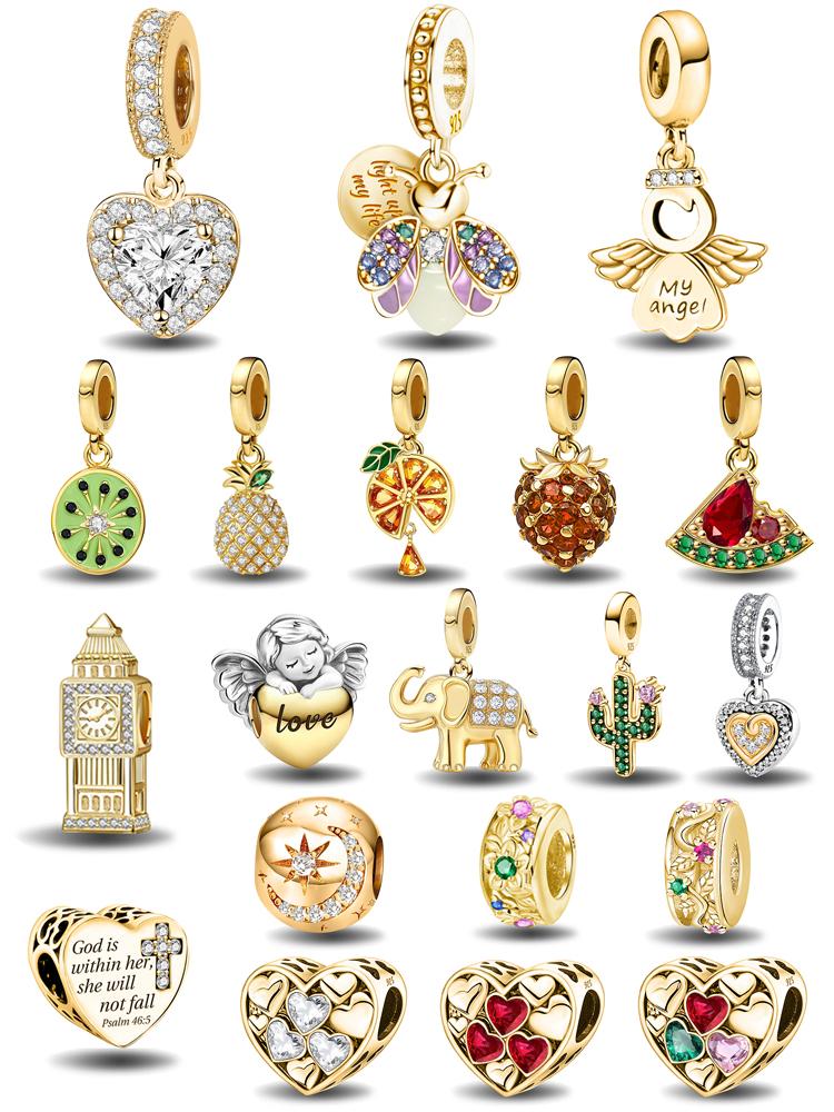 925 Silver Plated Cute Love Heart Firefly Golden Series Charms Bead For DIY Bracelet Necklace Making High Quality Jewelry Gift
