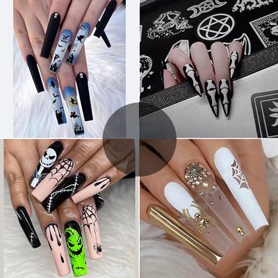 Halloween Fake Nail Square Press On Nail Glues On Nail Spiders False Nail Acrylic Nail for DIY Manicure Decorations