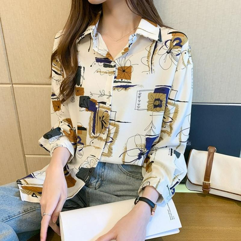 Retro Hong Kong Style Temperament Chiffon Long-sleeved Printed Shirt Women's Blouse Popular Loose Design Sense Niche
