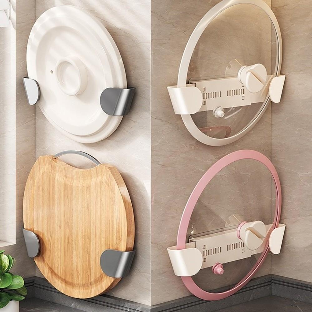 Telescopic Kitchen Pot Lid Rack Wall-mounted Kitchen Pot Lid Storage Tool Suction Cup Lid Holder Multi-functional