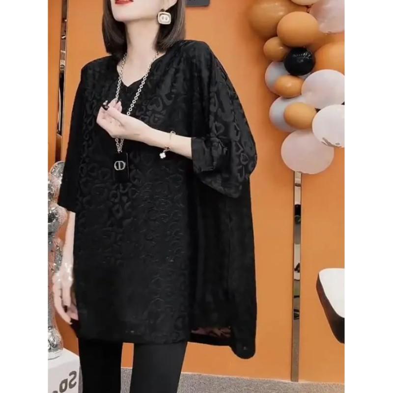 Women's Summer Plus Size Loose-Fit Tummy-Covering Casual T-Shirt Short-Sleeve V-Neck Everyday Top
