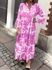 LYRIA Autumn and Winter Women's Clothing Long Dress New Standing Collar Flared Sleeve Printed Casual Dress Fashionable Plus Size