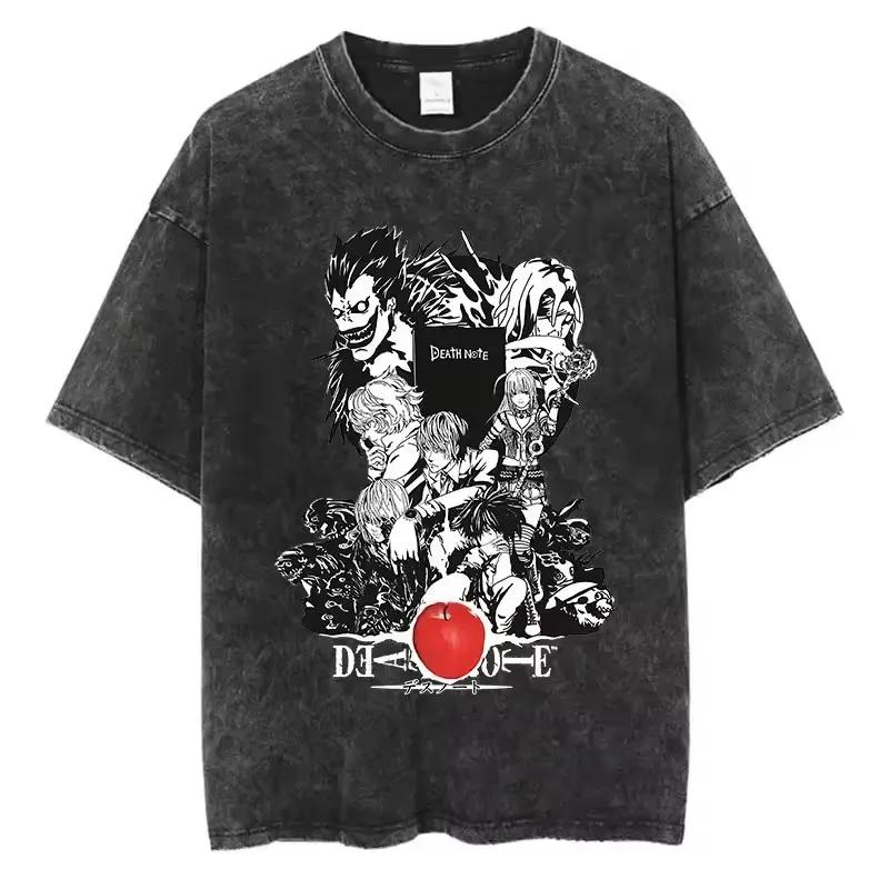 Death Anime Washed Short Sleeved Round Neck Y2k Tshirt Men Clothing New In Top Tees Mens T-Shirt Camisetas Fashion