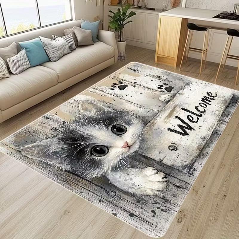 Cozy Cat Welcome Mat with Cute Kitten Paw Prints Non-Slip Entryway Rug Funny Pet Floor Carpet for Cat Lovers Gift for Cat Owners