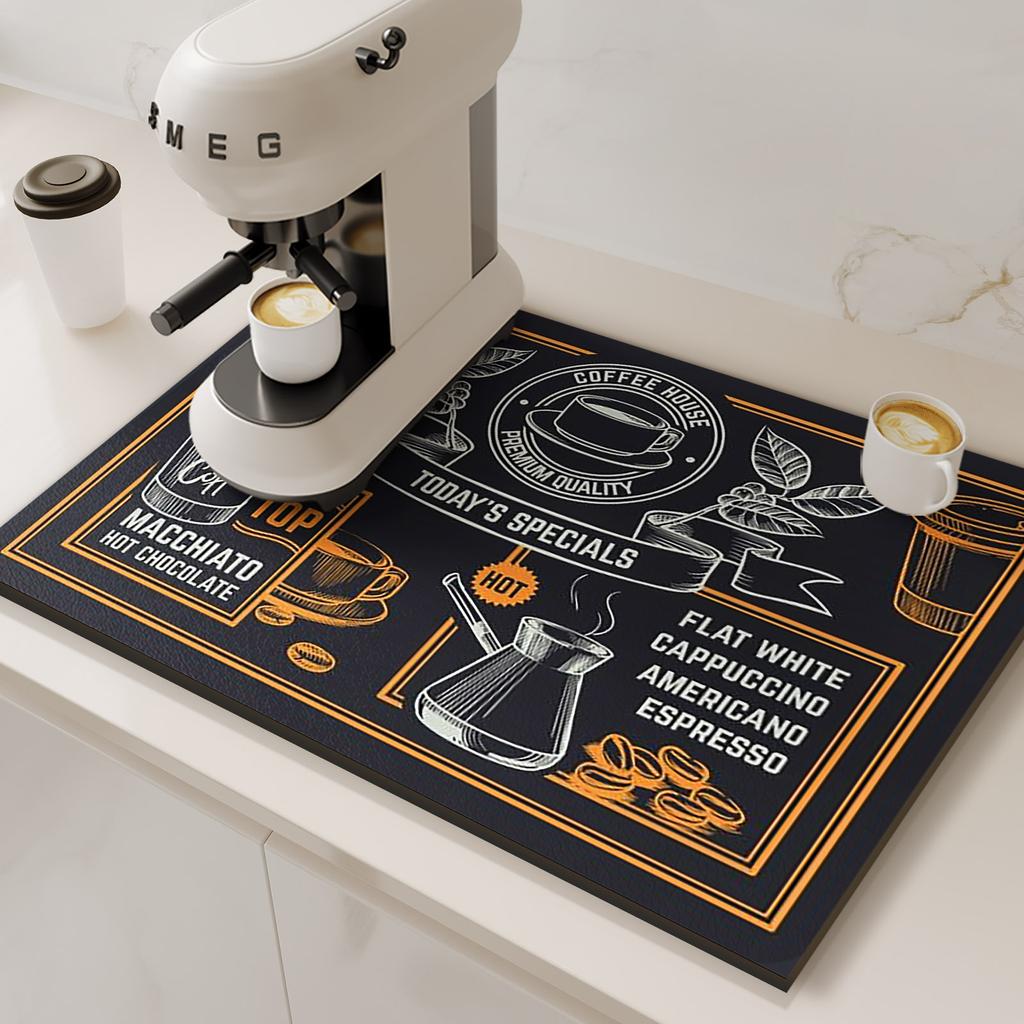 Retro Coffee Maker Mat Kitchen Drain Pad Non-slip Dish Drying Mats Quick Dry Tableware Faucet Placemat Dinnerware Washable