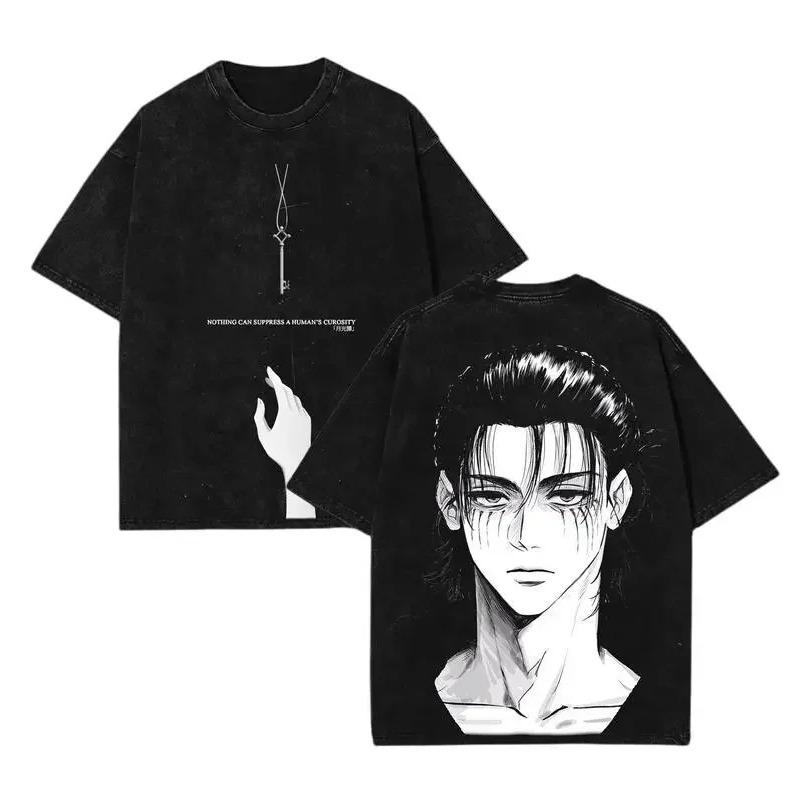 Manga Attack On Titan Eren Jager Graphic T-shirt Vintage Washed Oversized T Shirt Men Clothing Casual Cotton Short Sleeve Tees