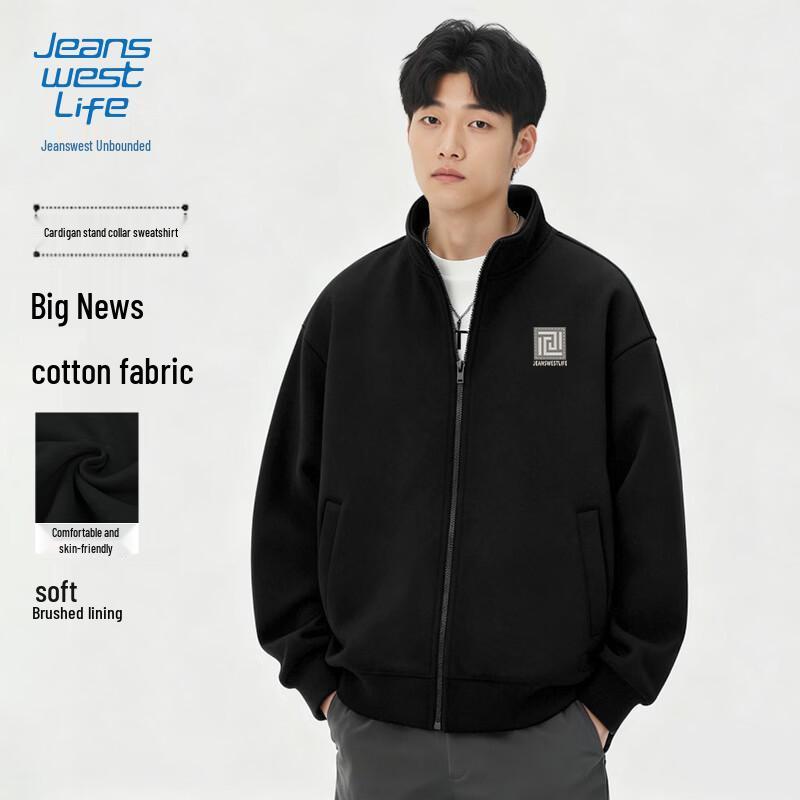 JEANSWEST LIFE Men's Stand Collar Jacket Sweatshirt Cardigan