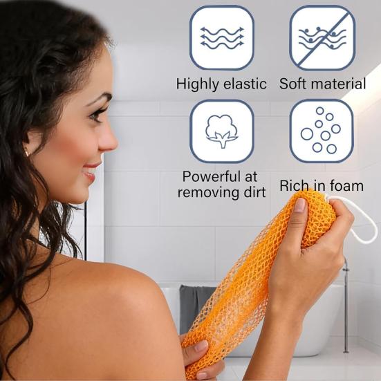 Optimal Size for Full-Body Reach: Measuring approximately 32 inches in length, this bath net allows effortless access to every part of your body, including hard-to-reach areas like the back. The attached string handle ensures a secure grip during use, enhancing convenience and control while scrubbing. This thoughtful design promotes thorough cleansing and exfoliation, making your shower routine more effective and comfortable.