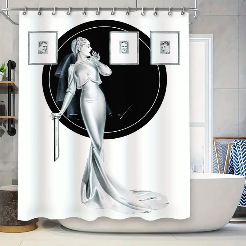 Luxurious Black White Art Deco Style Bathroom Shower Curtain with Elegant Woman Design for Home Decoration (Size: 180x240cm) Add