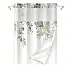 Plants Pattern with Hook Waterproof Shower Curtain, Removable With , Perfect For Bathroom Decor In Winter, Single-layer Design