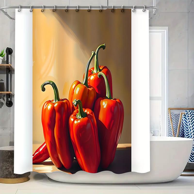 Chili Pepper Shower Curtain Rustic Farmhouse Kitchen Decor Spicy Food Print Bathroom Set Waterproof Modern Artistic Home