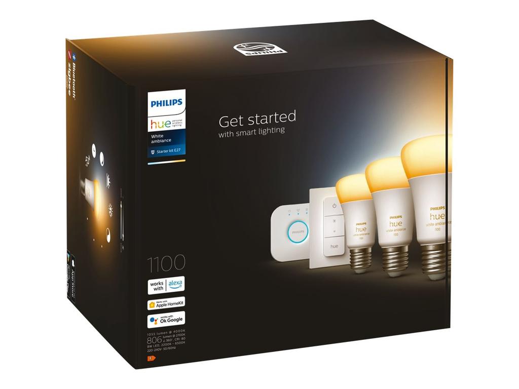 Philips Hue | WA Starter Kit 11W A60 E27 3pcs, Bridge, Switch | E27 | 11W | Warm To Cool White 2200-6500K + 16 Million Colors | Bluetooth and Zigbee