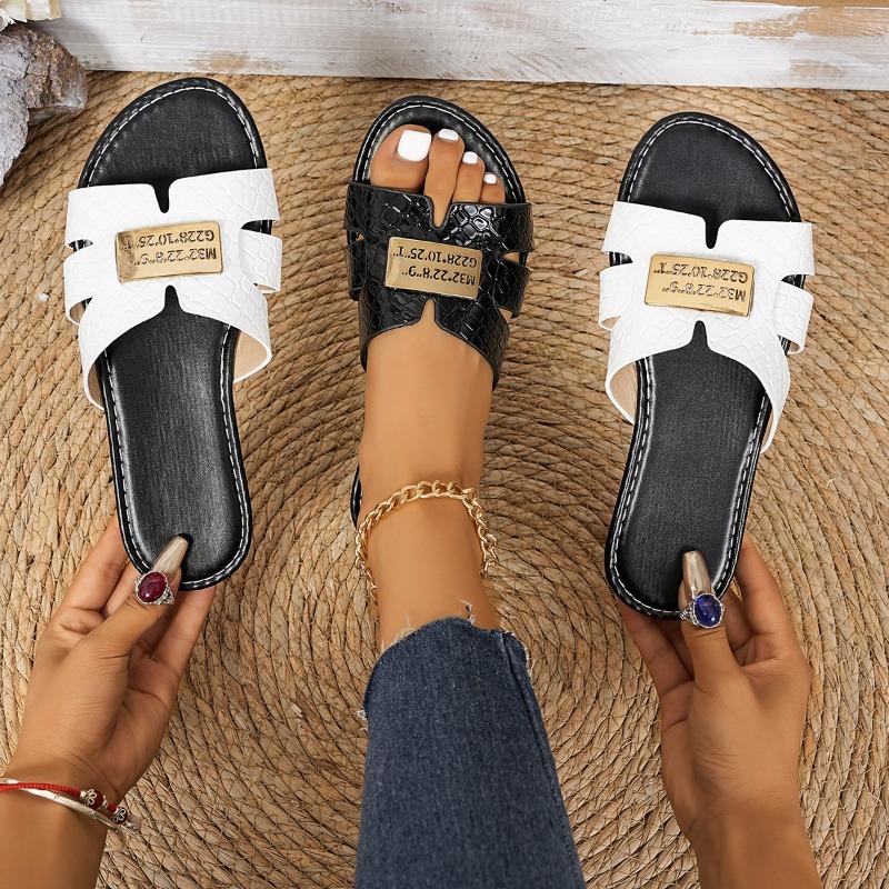 Women's Wide Width Solid Color Slides, Round Toe Flat Sandals, Classic Summer Slippers for Women