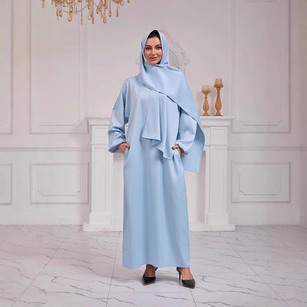 Women's Solid Color Long Sleeve Round Neck Hijab Muslim Robe
