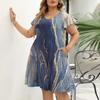 Plus Size Summer Beach Dress Loose V Neck Tunic A Line Ruffle Short Sleeve Comfortable Large Hem Dress For Women