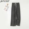 BITCED Women's Wide-Leg Trousers - Spring/Autumn Slimming High-Waisted Drapey Vertical Stripe Casual Trousers