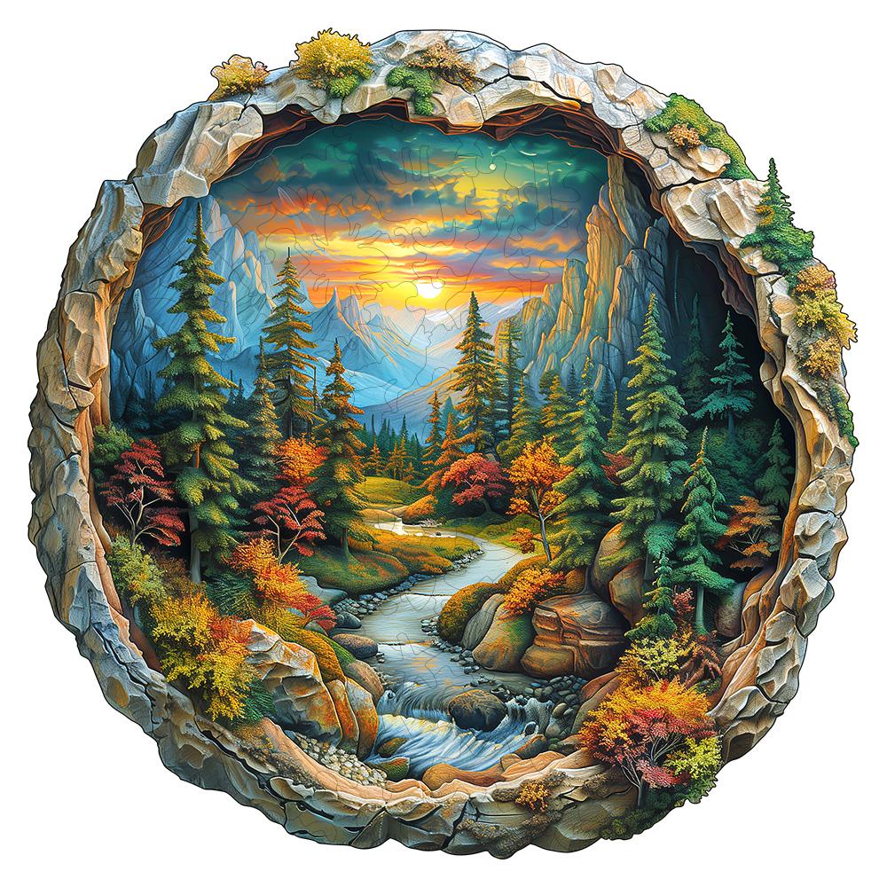 3D Wooden Circular Puzzle - Green Forest Sunset Scene, Family Game Activities, Wooden Home Decoration Gifts