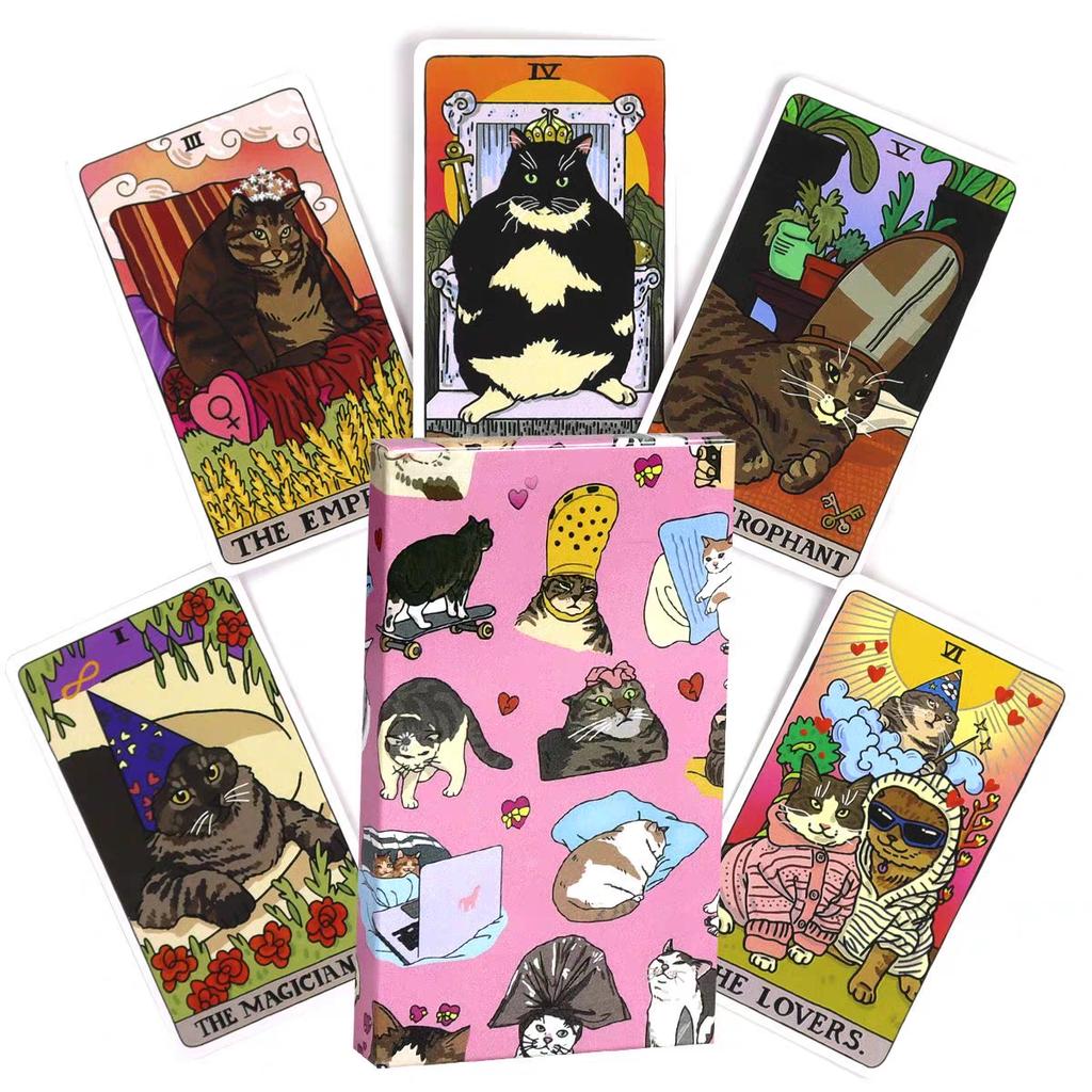 4*2.36 Inch Cat Tarot Deck Funny Witchy Cat Kawaii Uwu 22pcs Major Arcana - For Family Gathering Divination Board Game 10.3*6cm