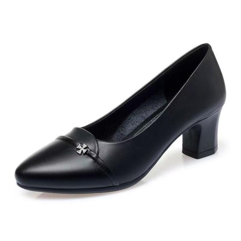 Single Shoes Women's Low Heel Spring and Autumn Soft Sole Comfortable Leather Shoes Women's Shoes Middle Heel Mother Shoes Work Shoes New