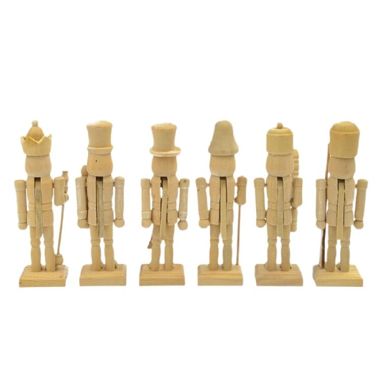 Set of 6 12CM Natural Wood Unpainted Nutcrackers Blank DIY Project For Home Decors And Holiday Celebration Decoration