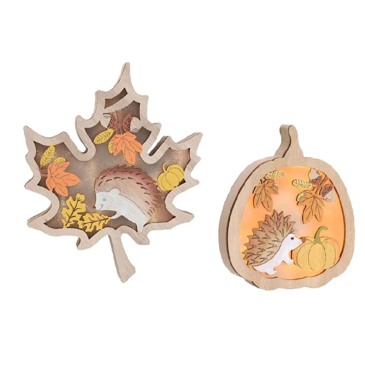 Handmade Fall Themed Wood Carving Decoration Thanksgiving Table Centerpieces Nontoxic Family Friendly Design Ornament