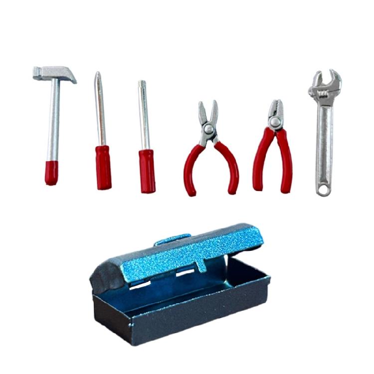 Use iron and alloy, this miniature toolbox set includes a hammer, wrench, screwdriver, and pliers, offering realistic display experiences for collectiable doll house decors.