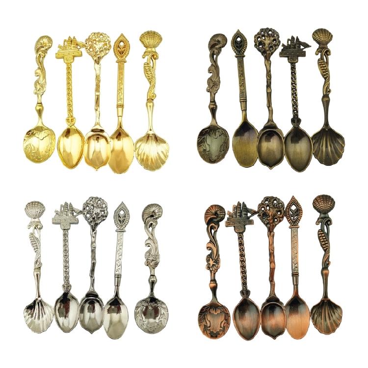 Retro Elegances Alloy Crafted 5Pcs Multifunctional Spoons Kitchen Utensils Collection Antique Relief Kitchen Accessorie