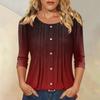 Women's Fashionable Casual Three-quarter Sleeve Button Gradient Round Neck Top