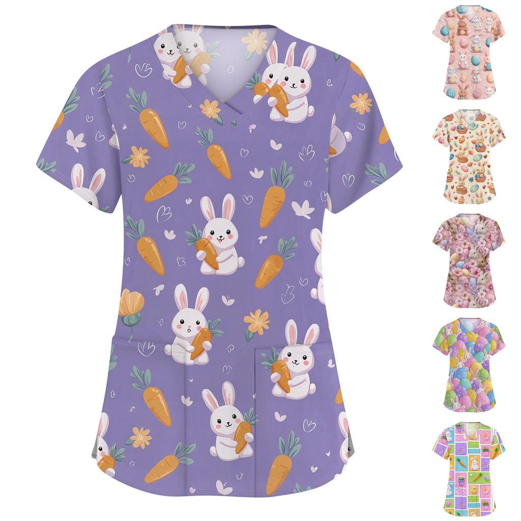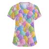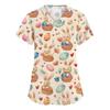 Women's Fashion V-neck Short Sleeve Workwear With Pockets Printed Tops