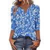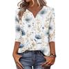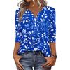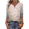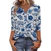 Women's Fashionable Casual Retro Floral Print V-Neck Button-Down Three-Quarter Sleeve T-Shirt Top