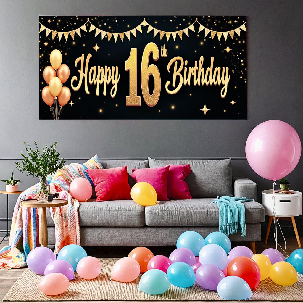 Balloon Decoration 16th Celebration Event Banner Birthday Backdrop for Sweet 16 Celebration Holiday Celebration Event Decoration